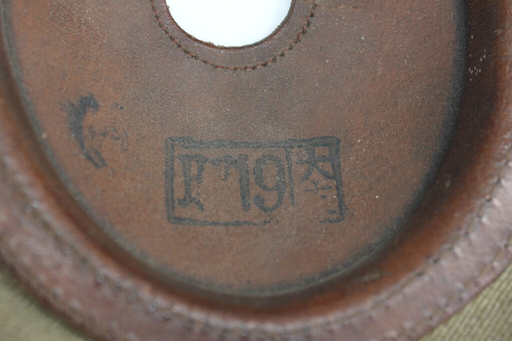 Divers marquages de l’armée sont présents au niveau des oreilles intérieures, l’un d’eux indique la date de production de Showa 19 / 1944.