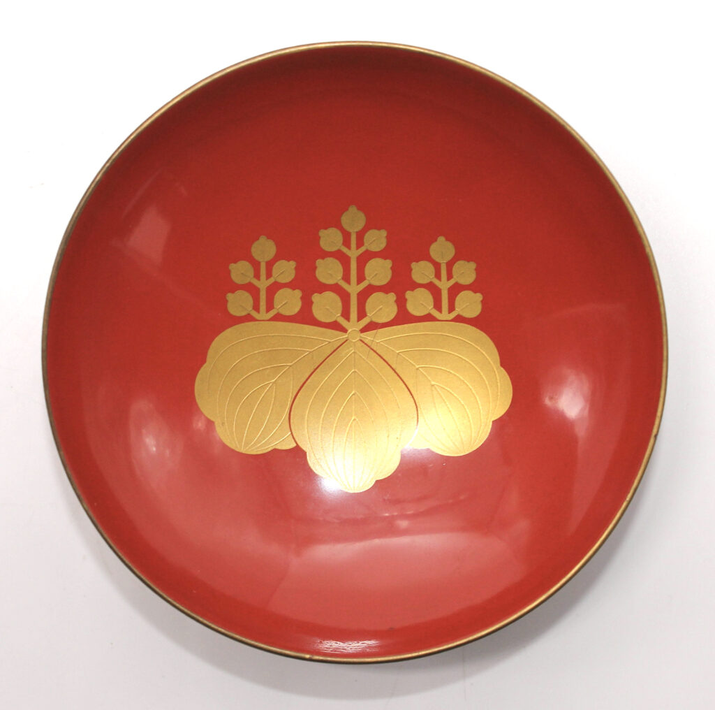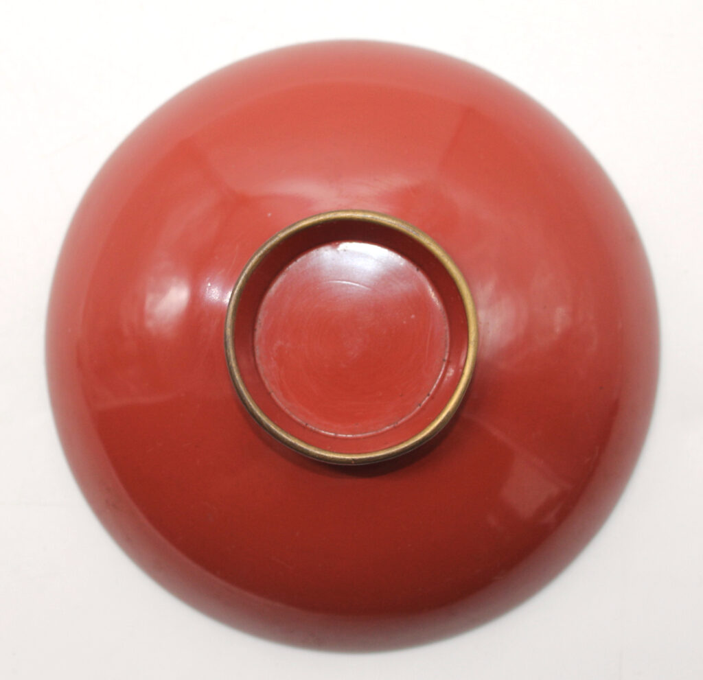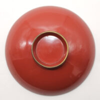 Cette coupe à saké commémorative de l’armée japonaise est en bois laqué rouge. Elle date des années 30/40