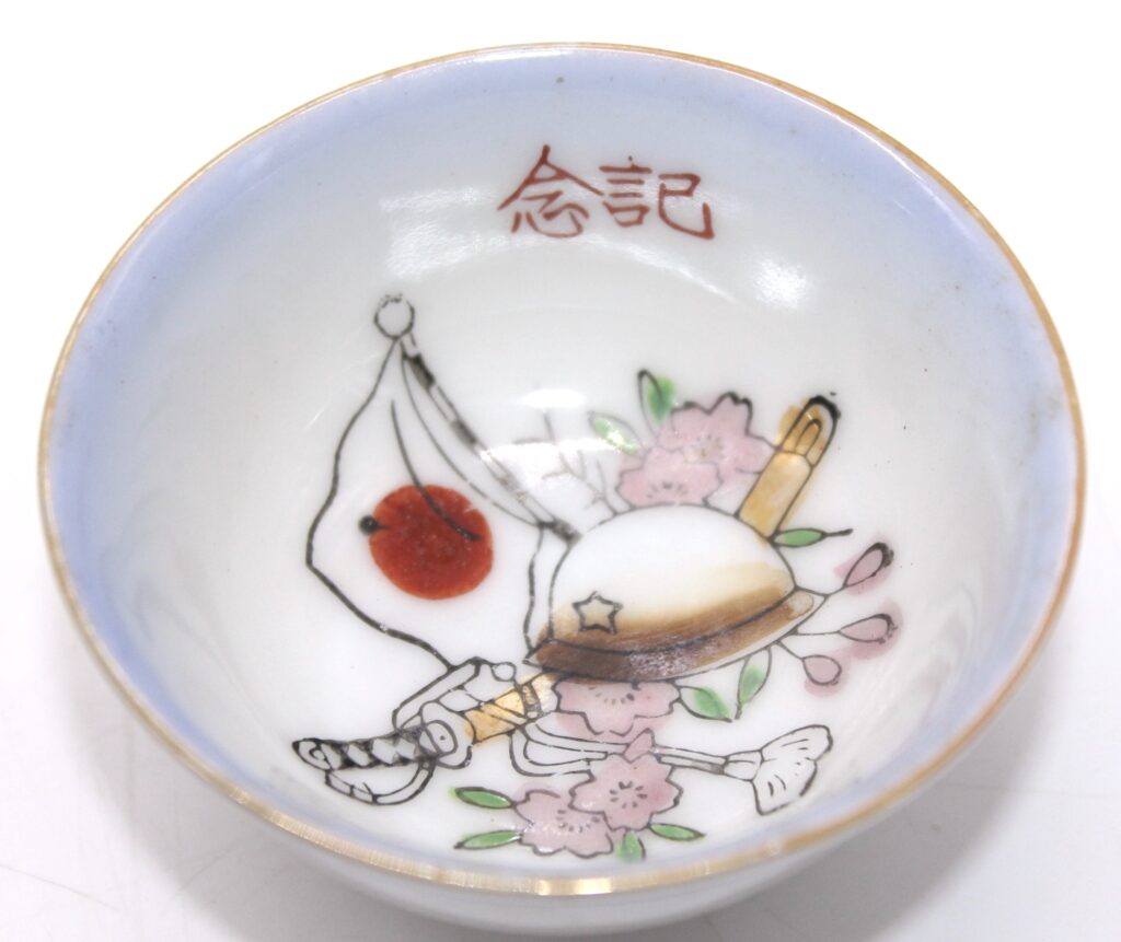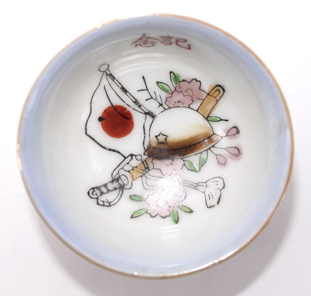 Cette coupe à saké commémorative en céramique de l’armée japonaise date des années 30/40.
