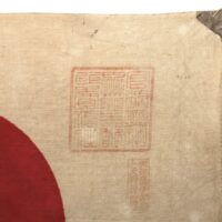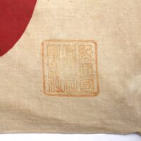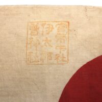 Des tampons rouges de sanctuaires shintoïstes de la préfecture de Wakayama sont présents dans les quatre coins du drapeau. Deux tampons sont encore lisibles :