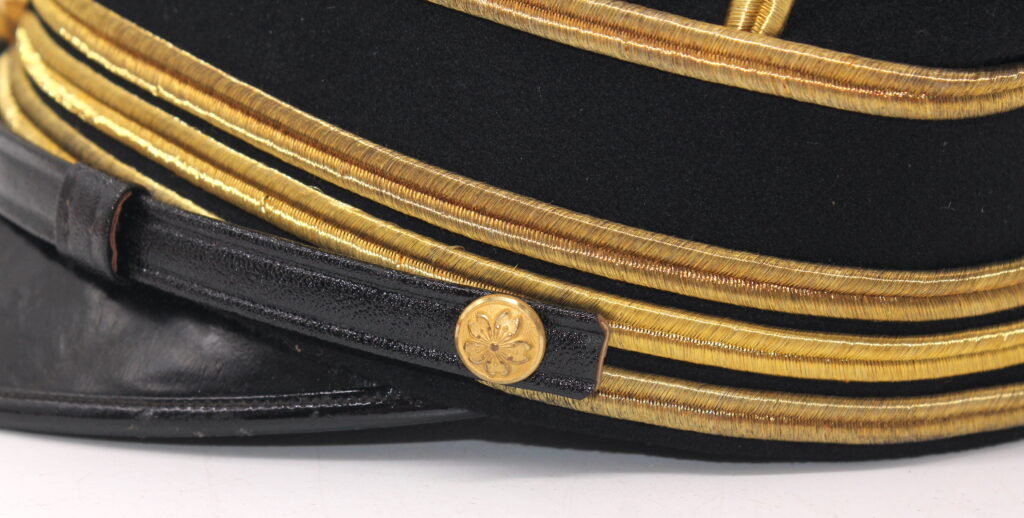 Ce modèle de casquette était en service de 1913 jusqu’à la fin de la Seconde Guerre mondiale. Il était porté par les officiers avec la tenue de parade/cérémonie.
