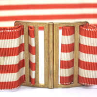 Sur la seconde casquette, le nom de l’officier est inscrit en alphabet latin (ce qui était courant avant les années 40). Le tressage doré sur cette casquette indique le grade de colonel.