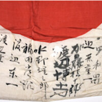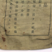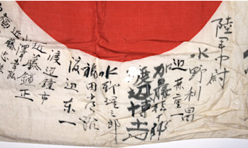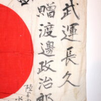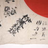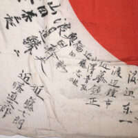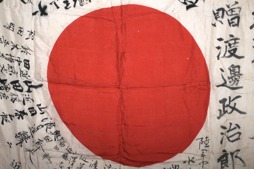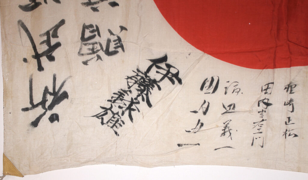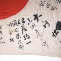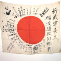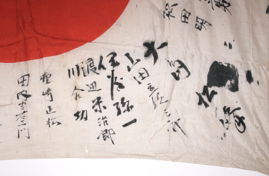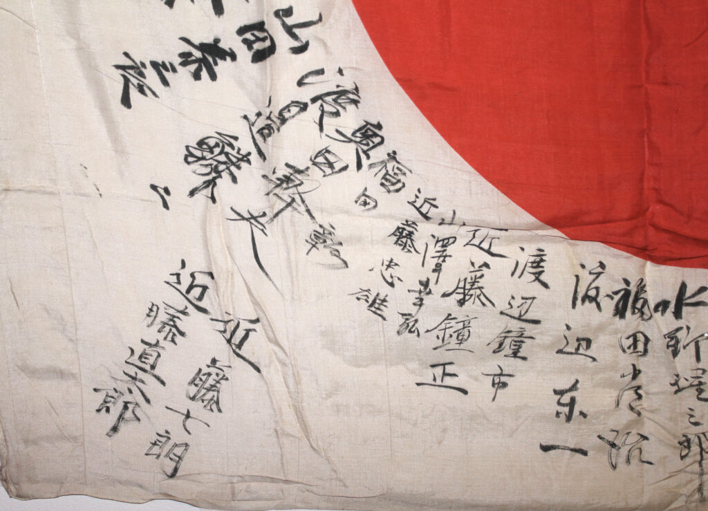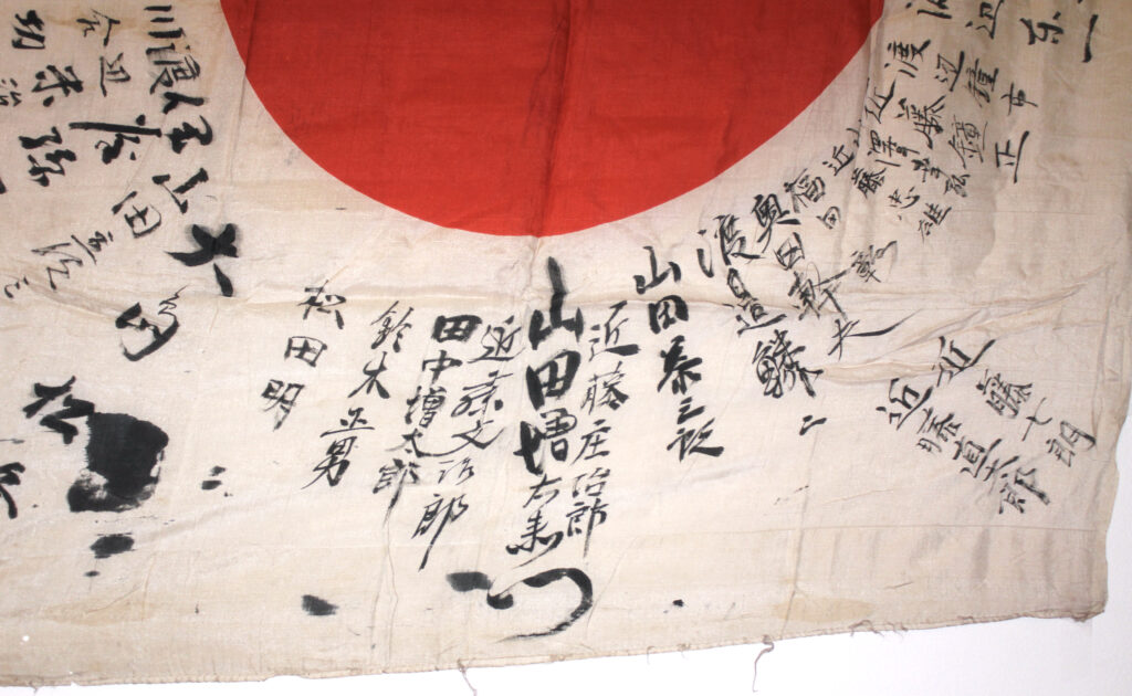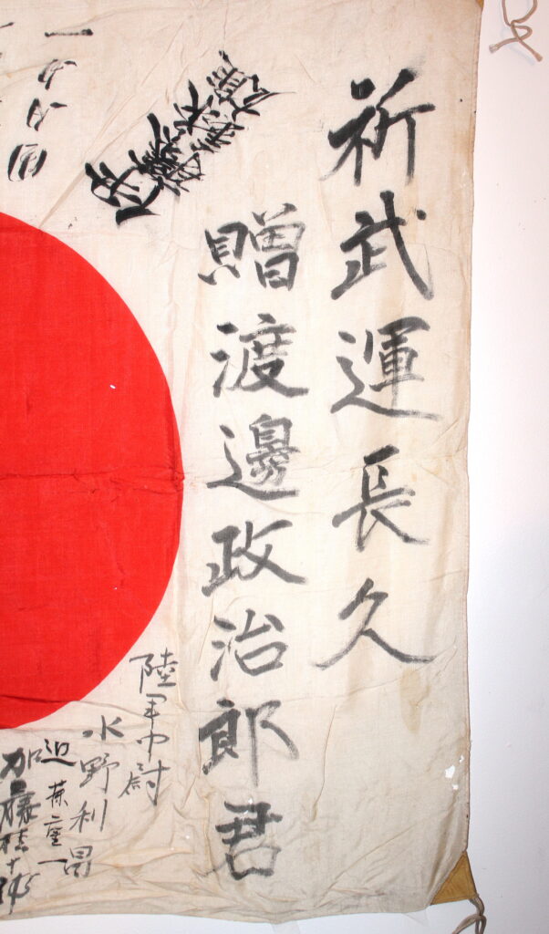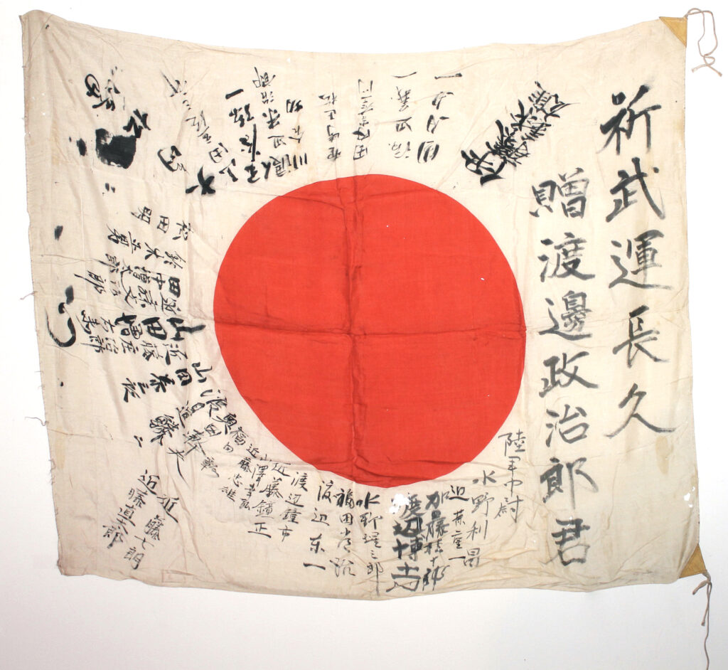 – Un drapeau national japonais porte bonheur Hinomaru Yosegaki signé par l’entourage du soldat.