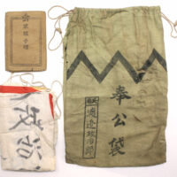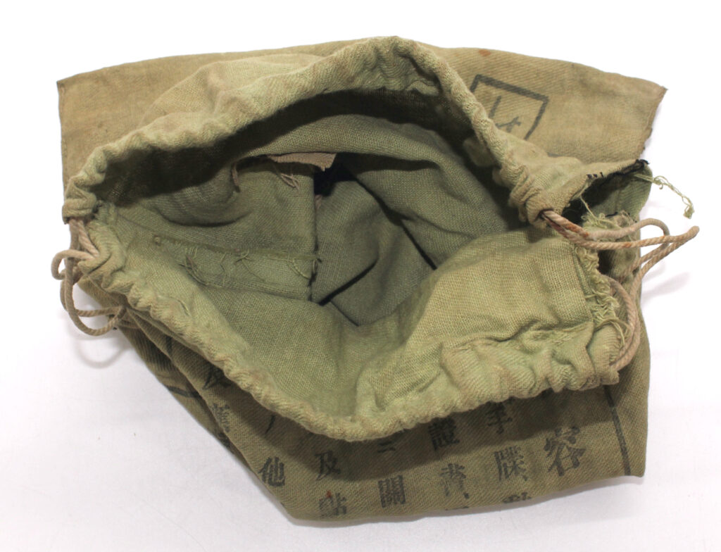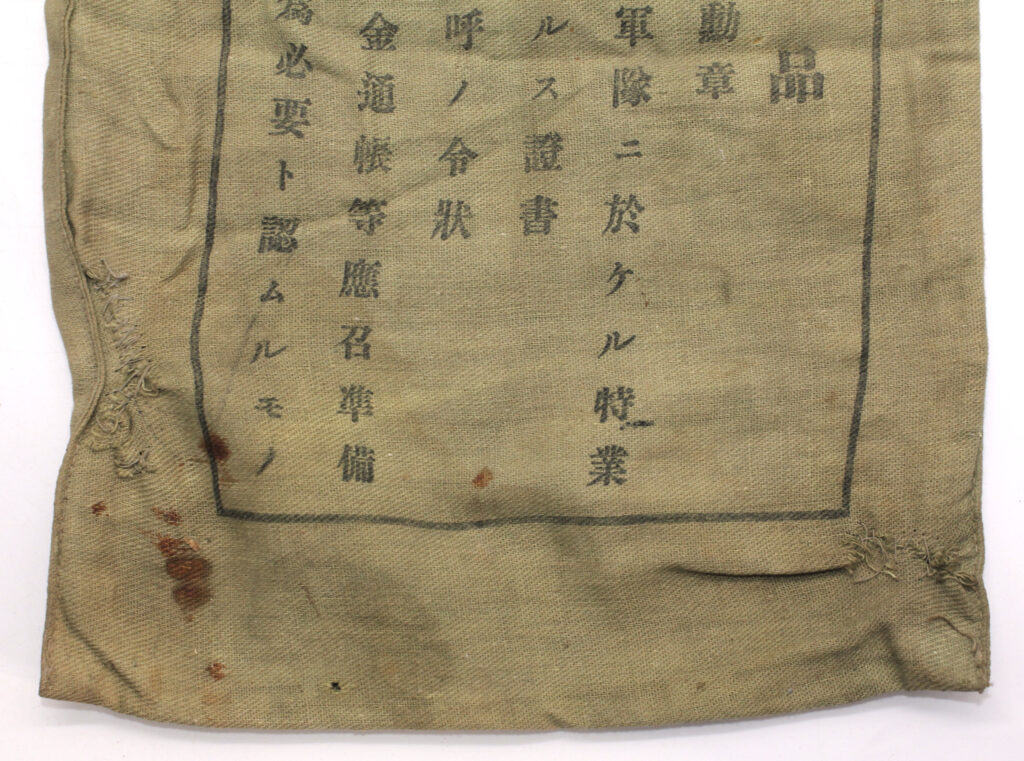 – Un sac en coton Houkou bukuro qui était utilisé par les soldats pour ranger leurs effets personnels (livret, photos, drapeaux, médailles…)