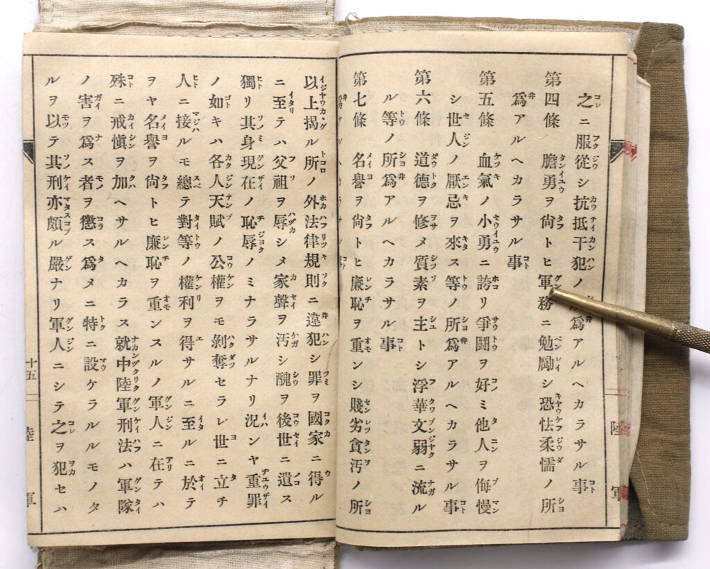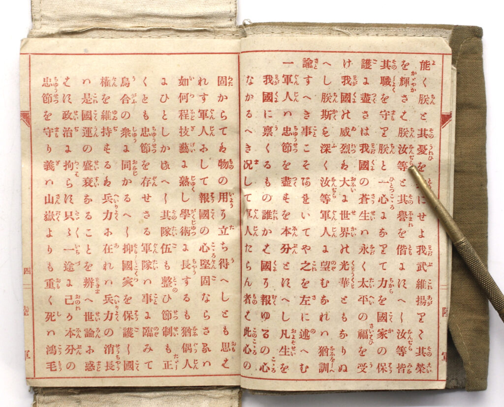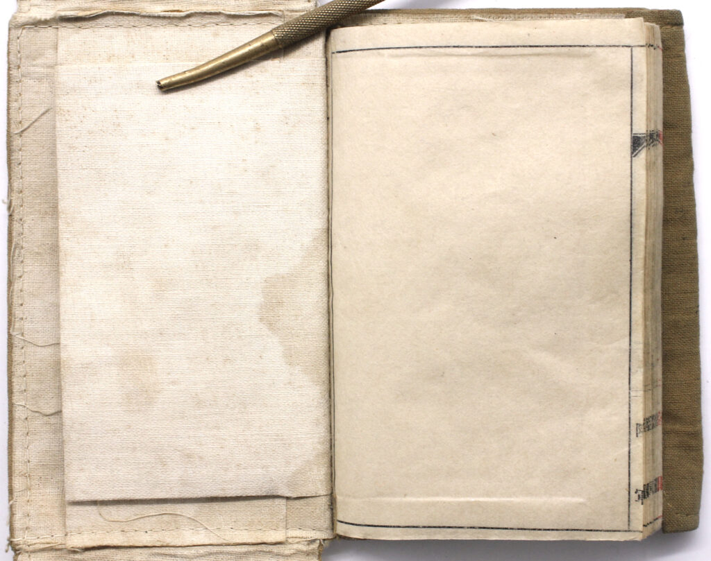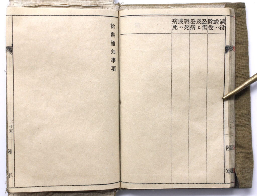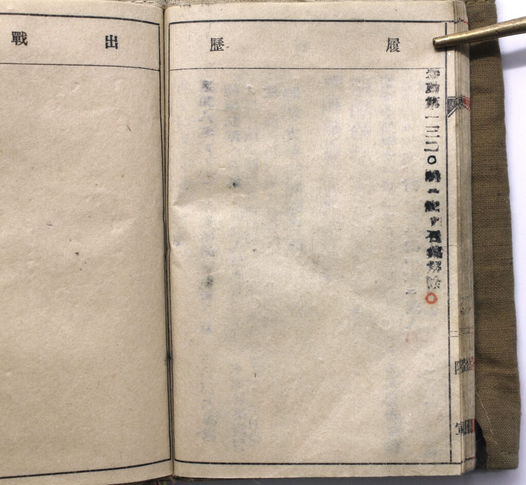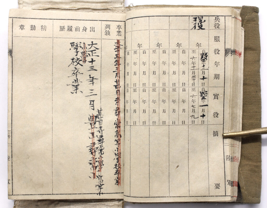 Le livret d’identification militaire Guntai techo présent dans cet ensemble est le modèle qui était attribué aux soldats japonais à partir de 1912.