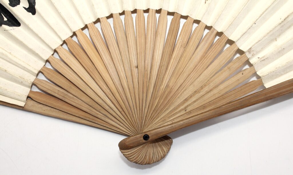 L’autre face de l’éventail comporte une inscription : 必勝 (Victoire assurée)