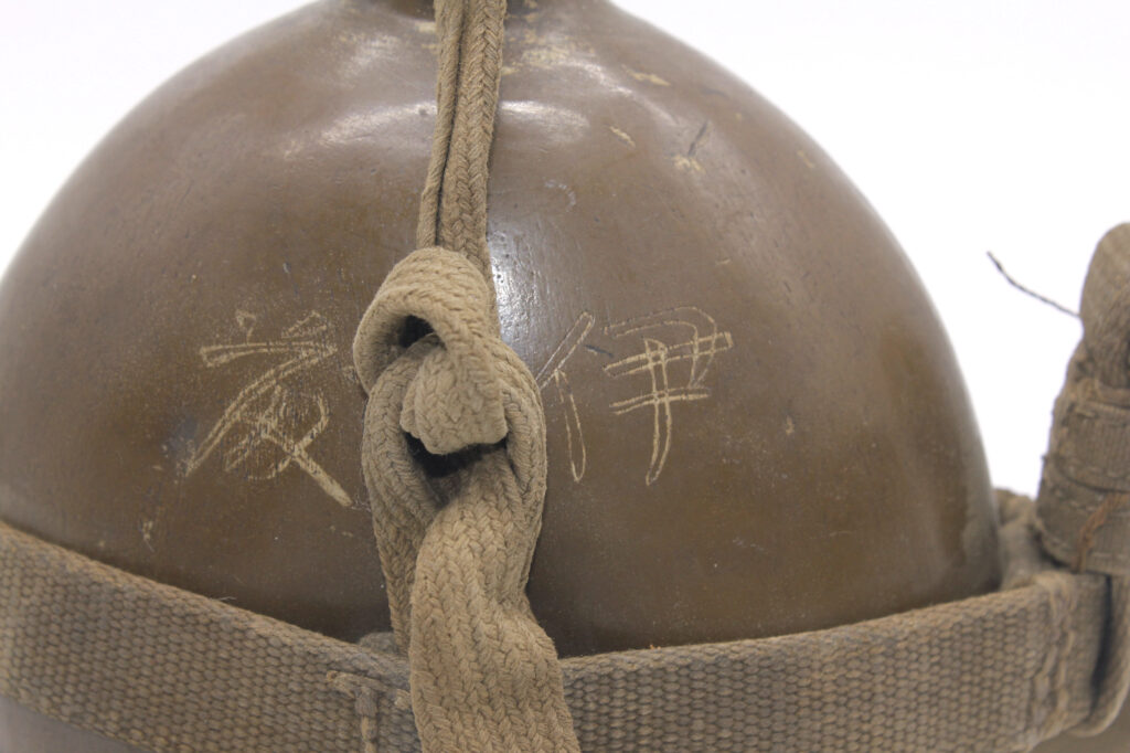 Le nom du soldat est gravé sur le devant de la gourde : 伊藤 (Itō)