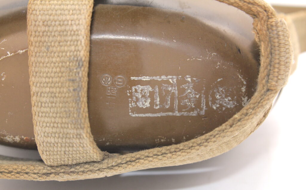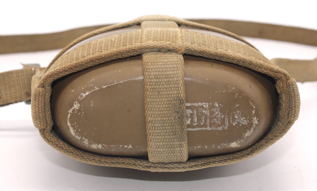Le sceau de l’arsenal ainsi que la date de production sont frappés sous la gourde : 昭一七 (Showa 17 /1942). Un tampon indiquant la date est également présent : 昭17