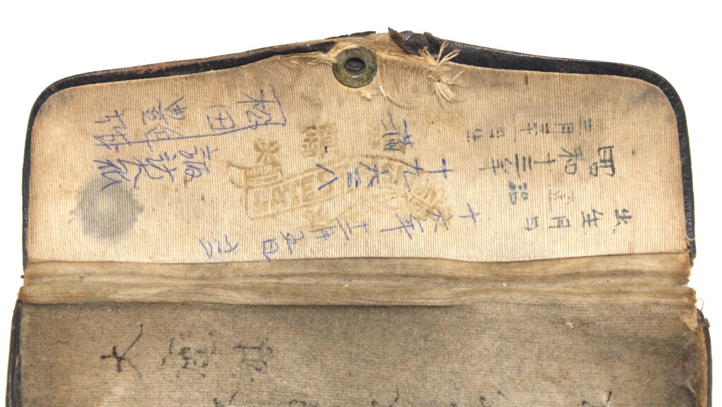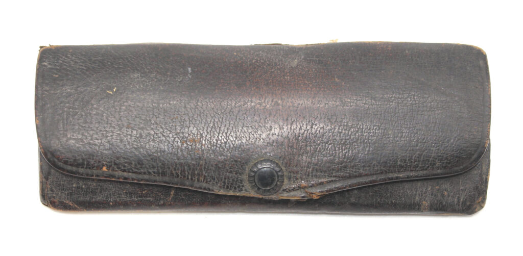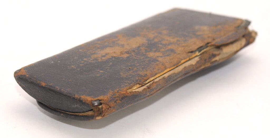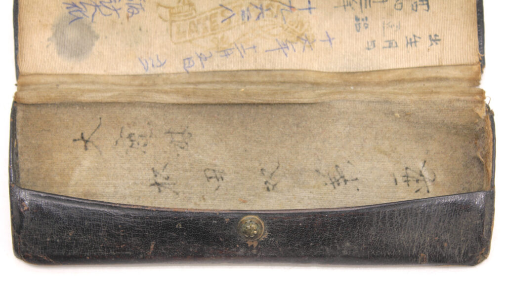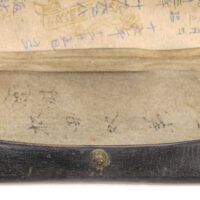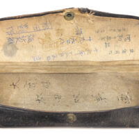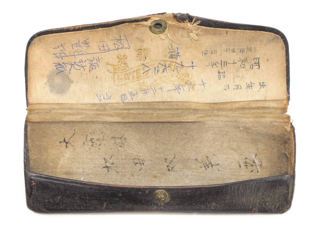 Les lunettes sont avec leur étui de rangement qui comporte des inscriptions à l’intérieur :
