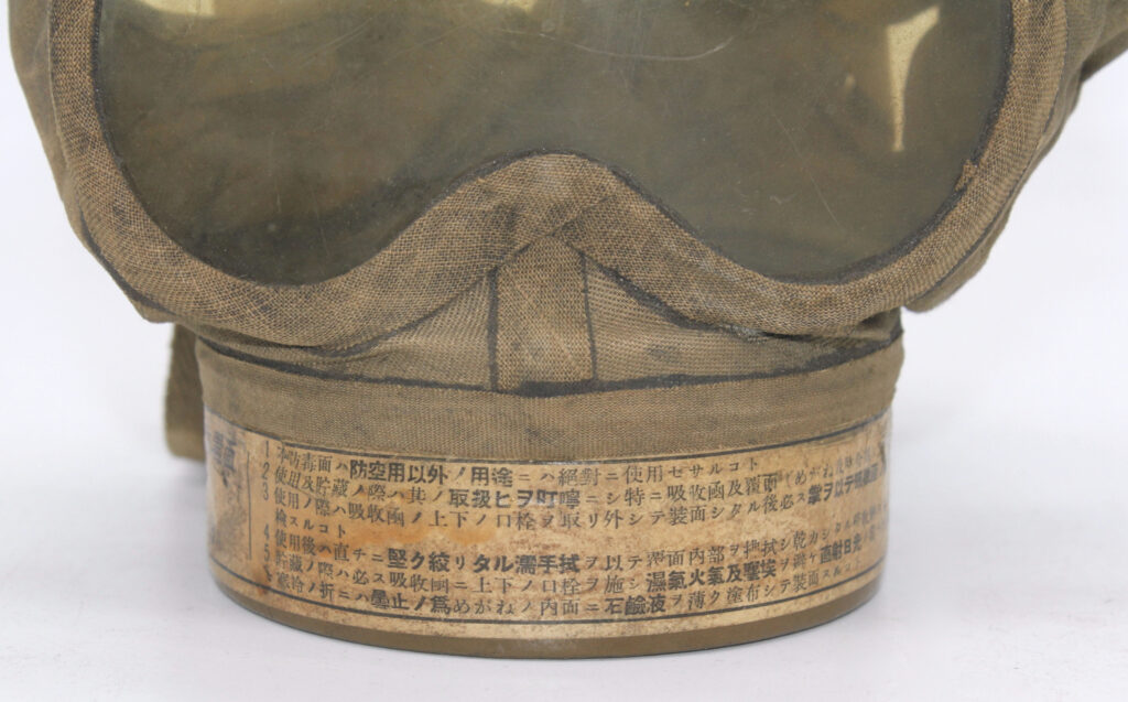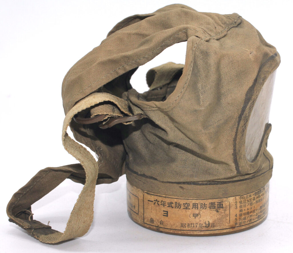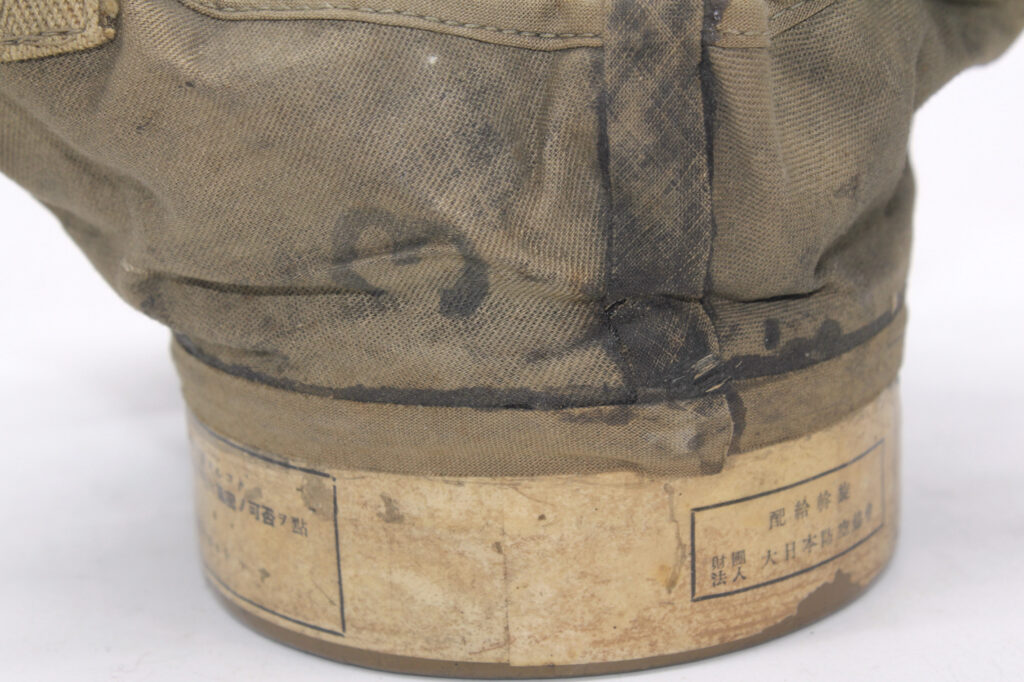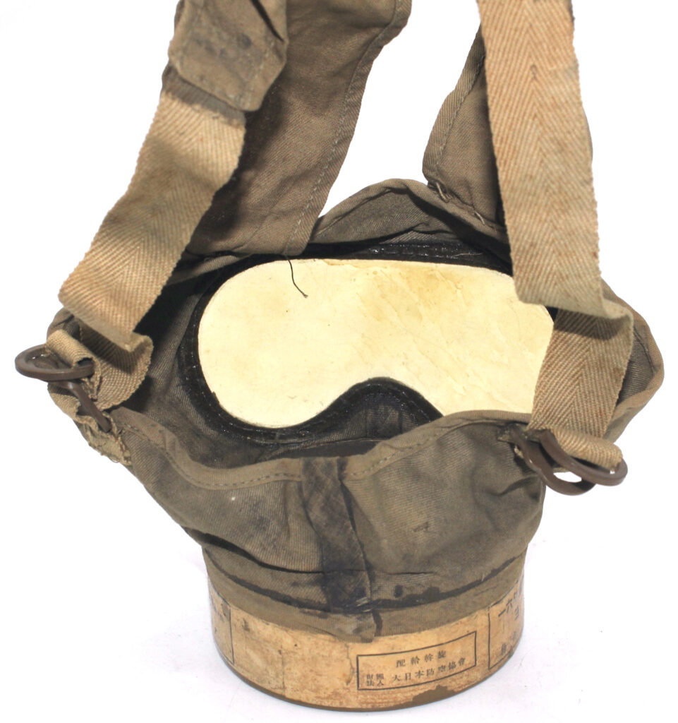 Ce type de masque à gaz en toile caoutchoutée/vulcanisée était distribué à la population civile du Japon durant la Seconde Guerre mondiale. Il pouvait également être distribué à la défense civile.