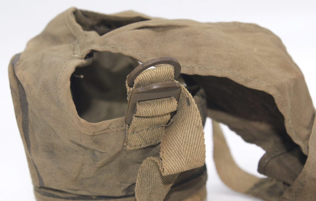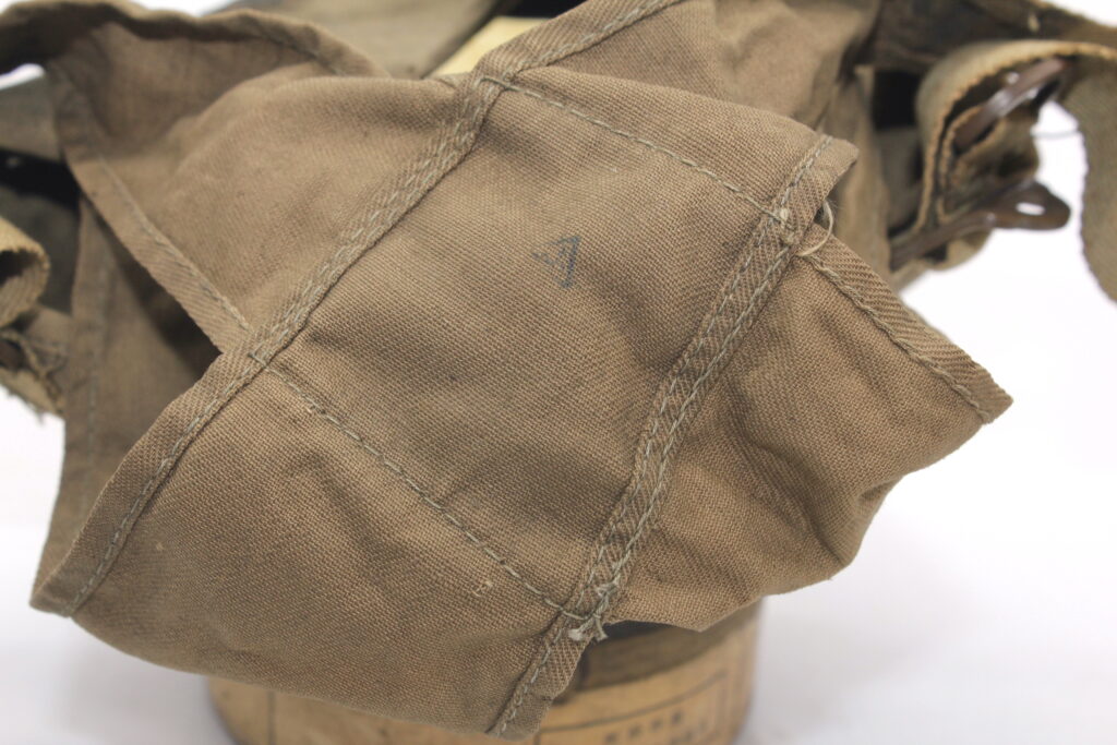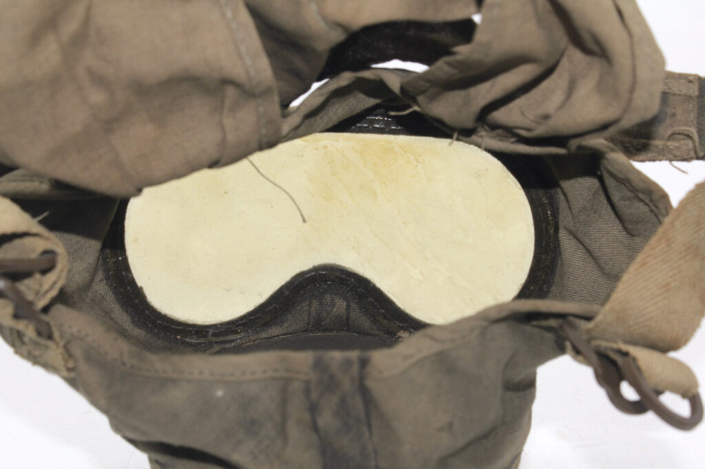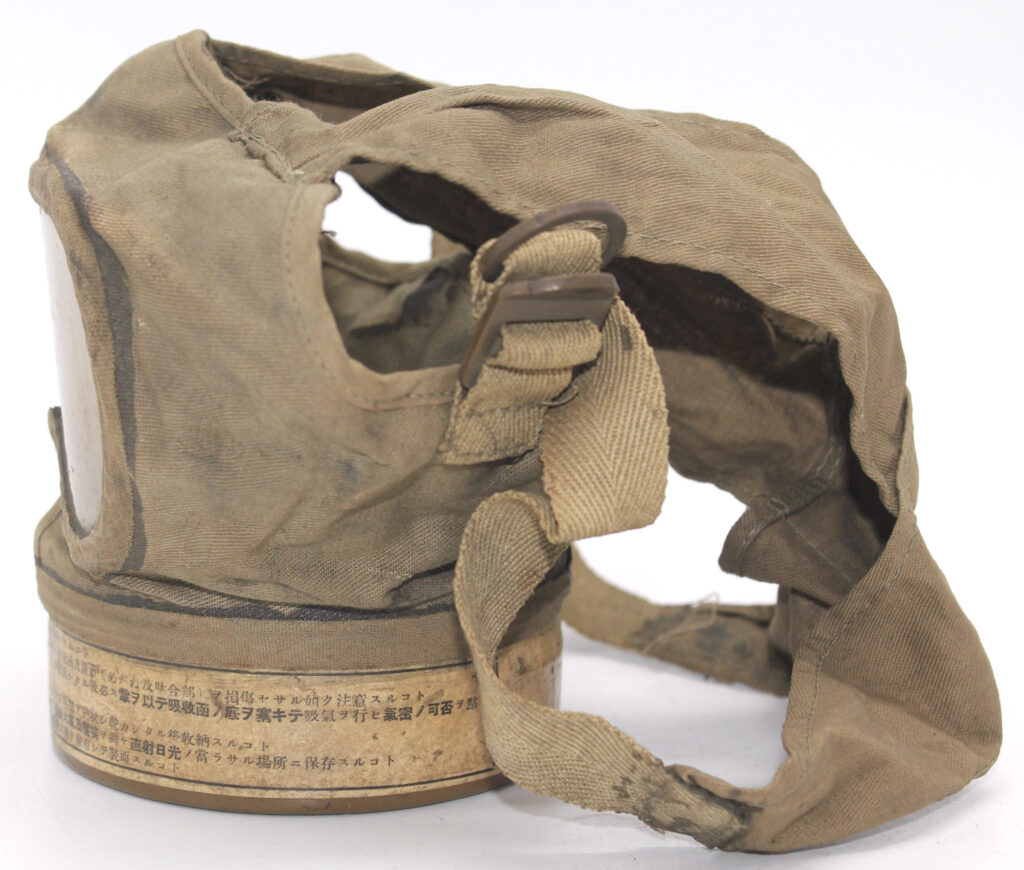 Ce type de masque à gaz en toile caoutchoutée/vulcanisée était distribué à la population civile du Japon durant la Seconde Guerre mondiale. Il pouvait également être distribué à la défense civile.