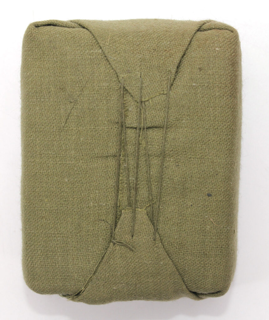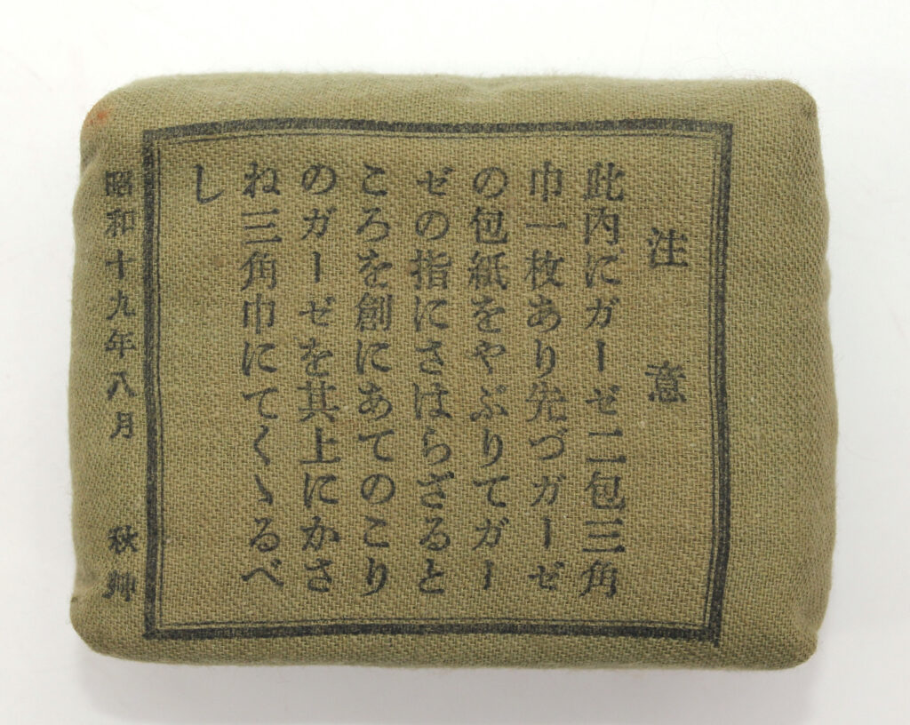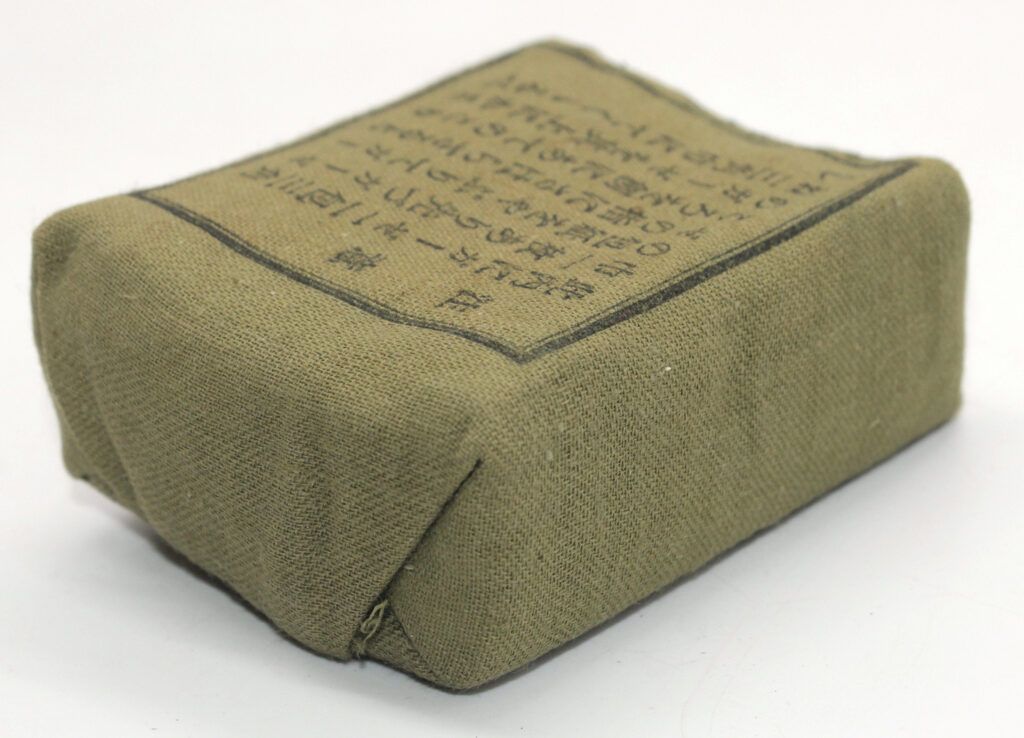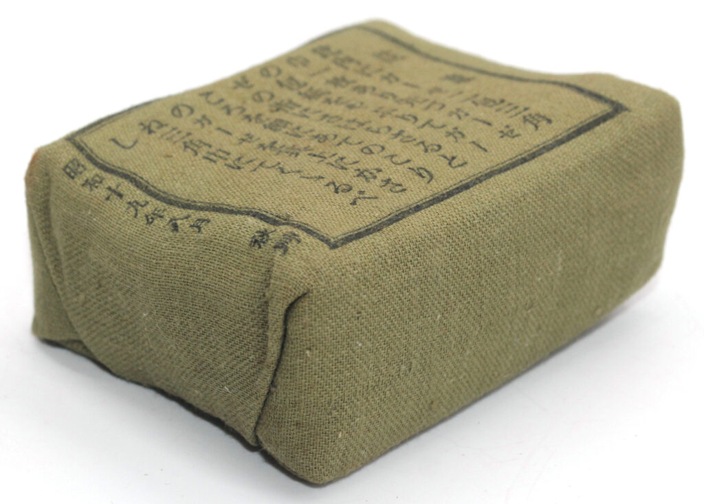 Le pansement de campagne individuel était présent dans l’inventaire des soldats japonais durant la Seconde Guerre mondiale.