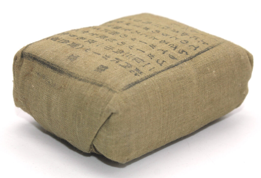 Le pansement de campagne individuel était présent dans l’inventaire des soldats japonais durant la Seconde Guerre mondiale.