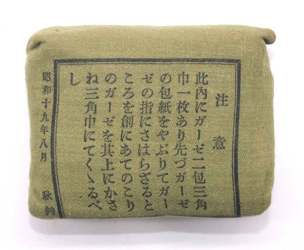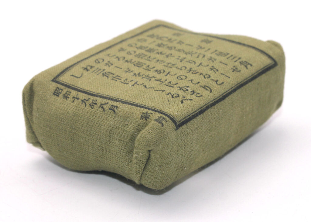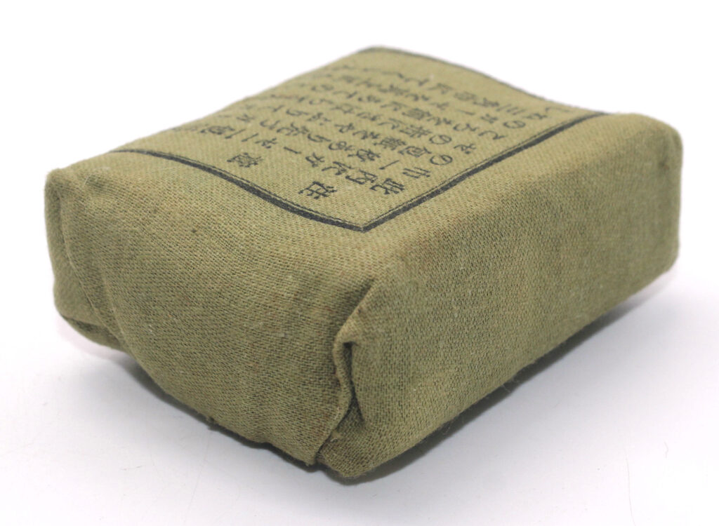 Le pansement de campagne individuel était présent dans l’inventaire des soldats japonais durant la Seconde Guerre mondiale.