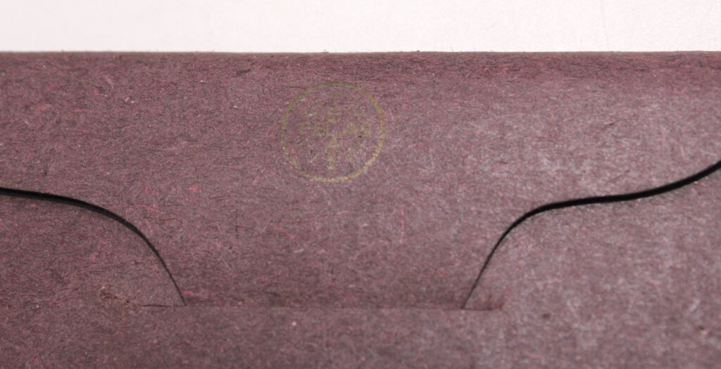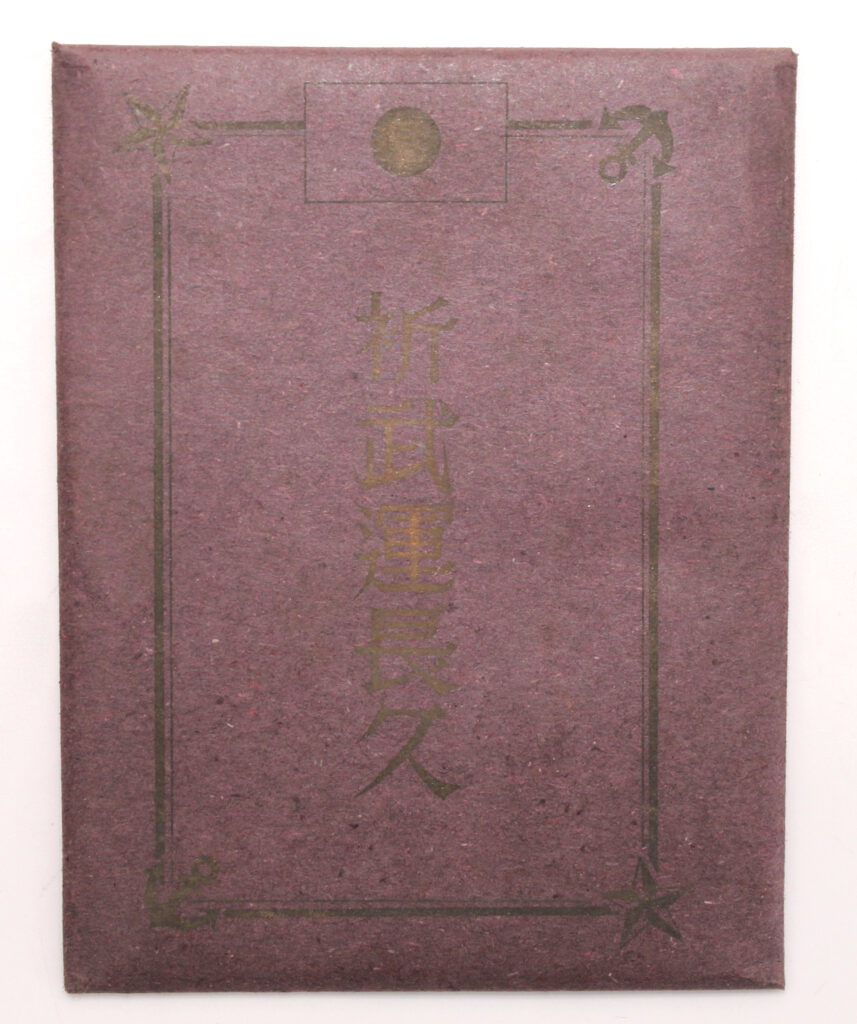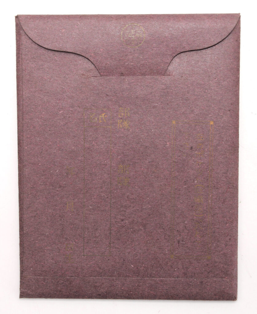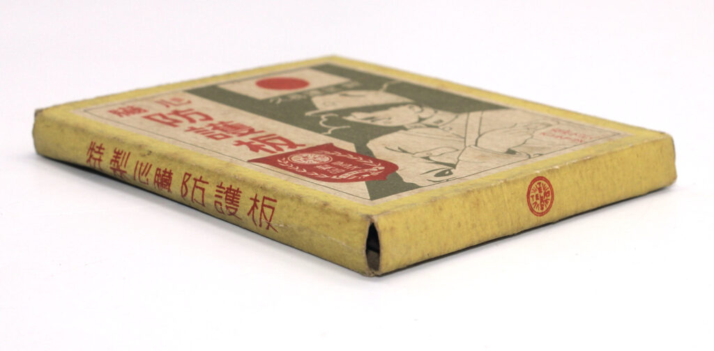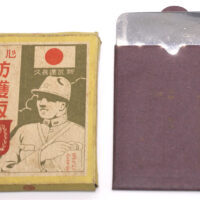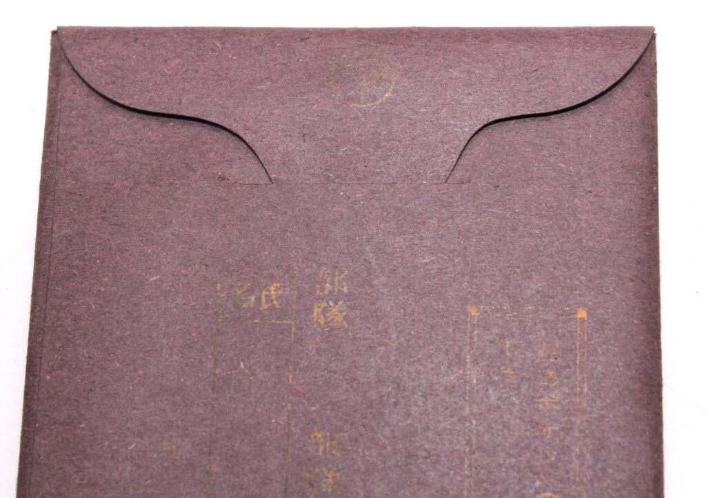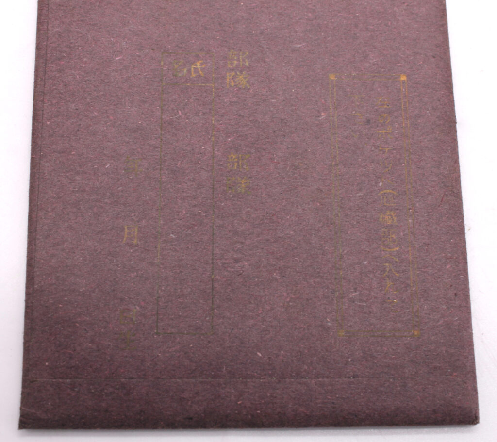 L’étui en carton contient une plaque en acier qui est glissée dans une pochette en papier. Le soldat japonais devait placer la plaque dans la poche avant gauche de sa vareuse afin de protéger son coeur d’une éventuelle balle tirée par l’ennemi.