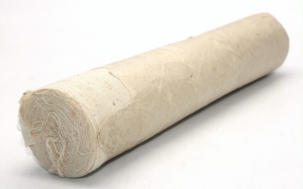 Le bandage est en gaze de coton. La longueur du bandage est indiquée aux extrémités de l’emballage en papier. La longueur de celui-ci est de 4 m.