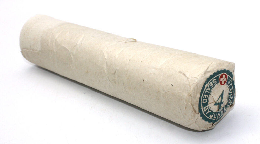 Le rouleau de bandage était utilisé par les médecins et les chirurgiens de l’Armée impériale japonaise pour soigner les blessures nécessitant un bandage de grande taille.