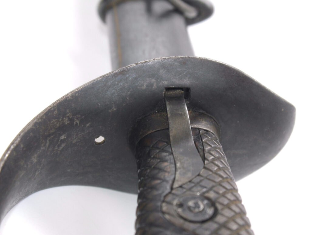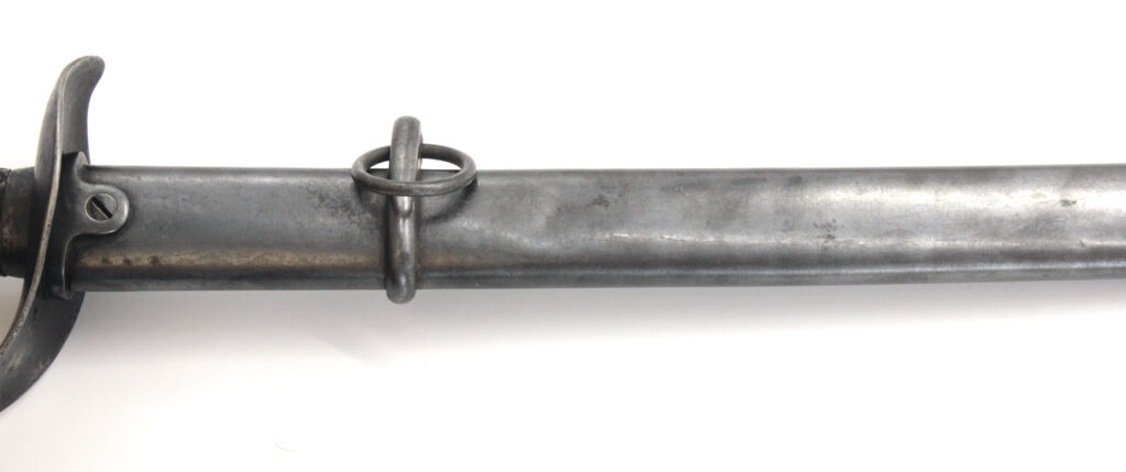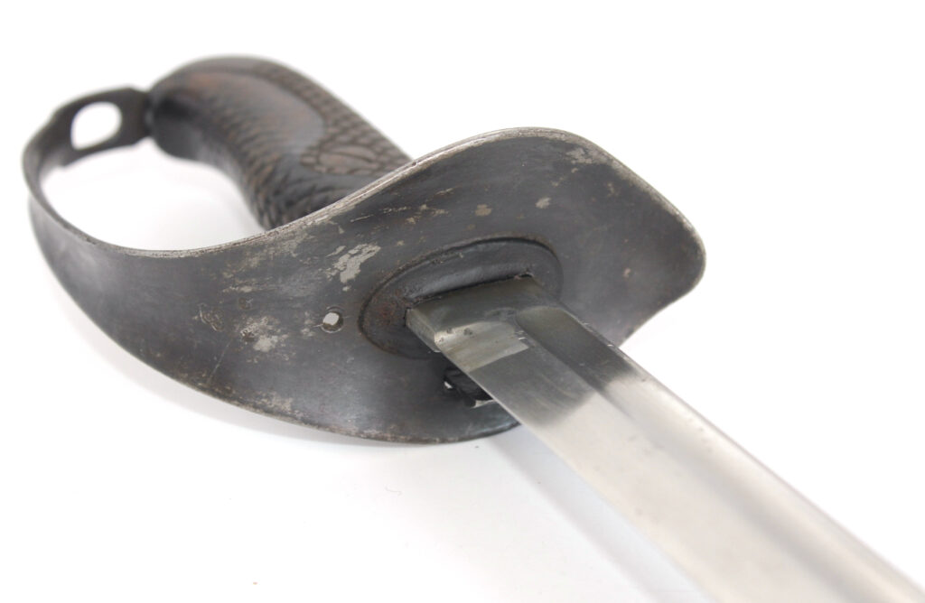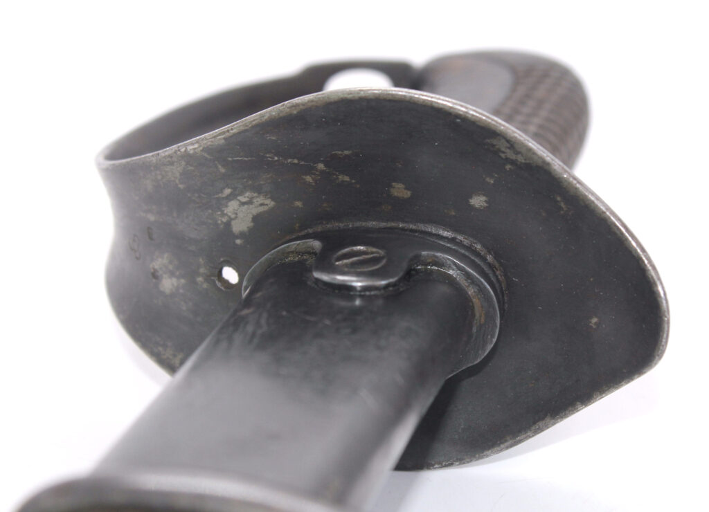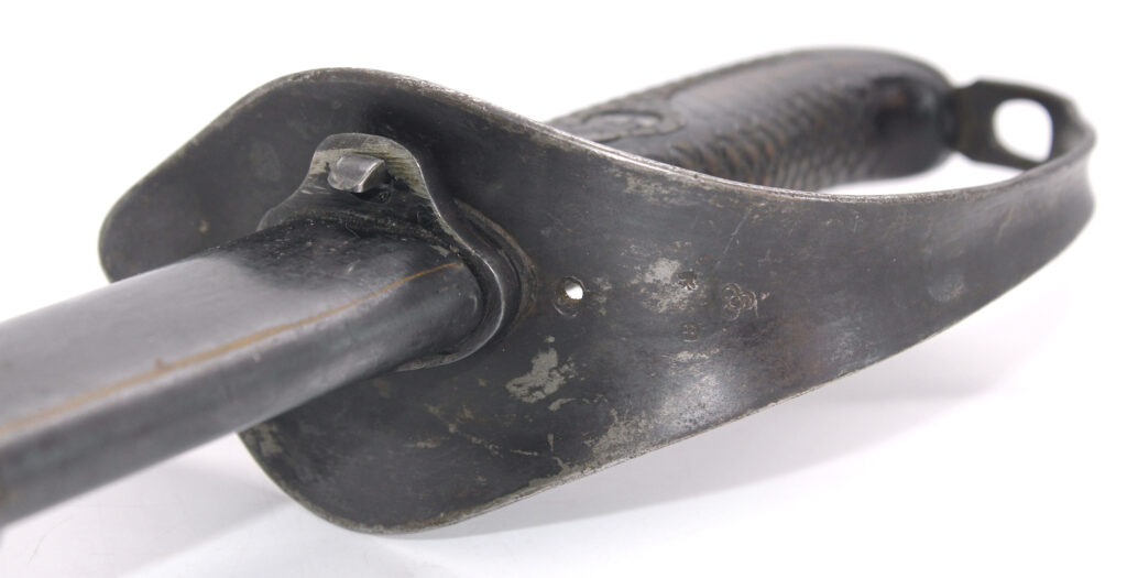 Ce sabre comportait à l’origine une boucle en cuir à l’intérieur de la garde. Cette boucle en cuir est manquante sur ce sabre, il ne reste que le trou du rivet de fixation. La boucle en cuir était souvent retirée volontairement pour diverses raisons. Une des raisons était le fait qu’elle gênait le port des gants.