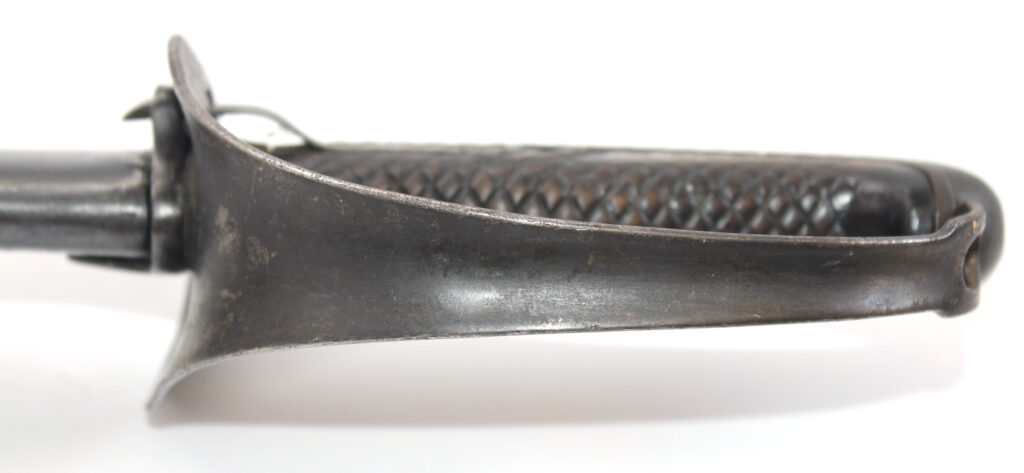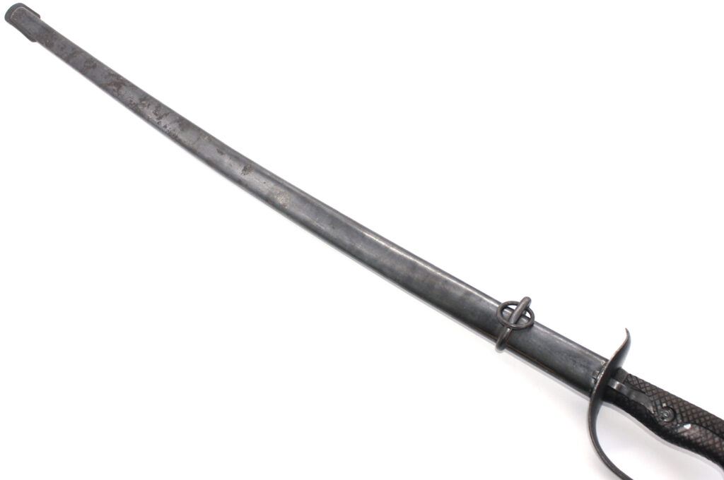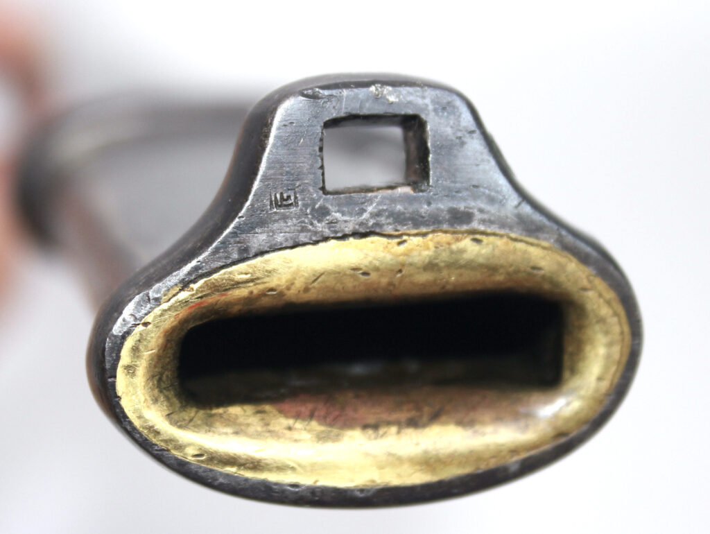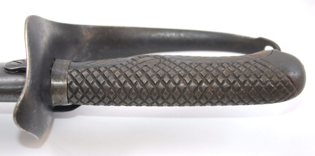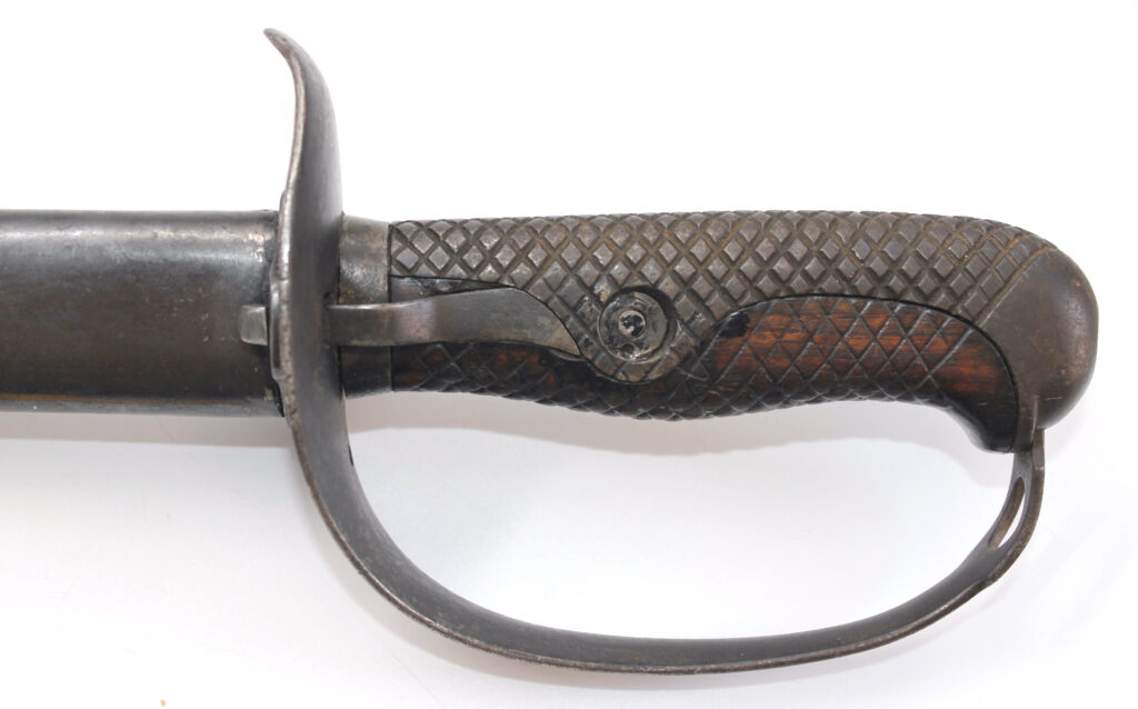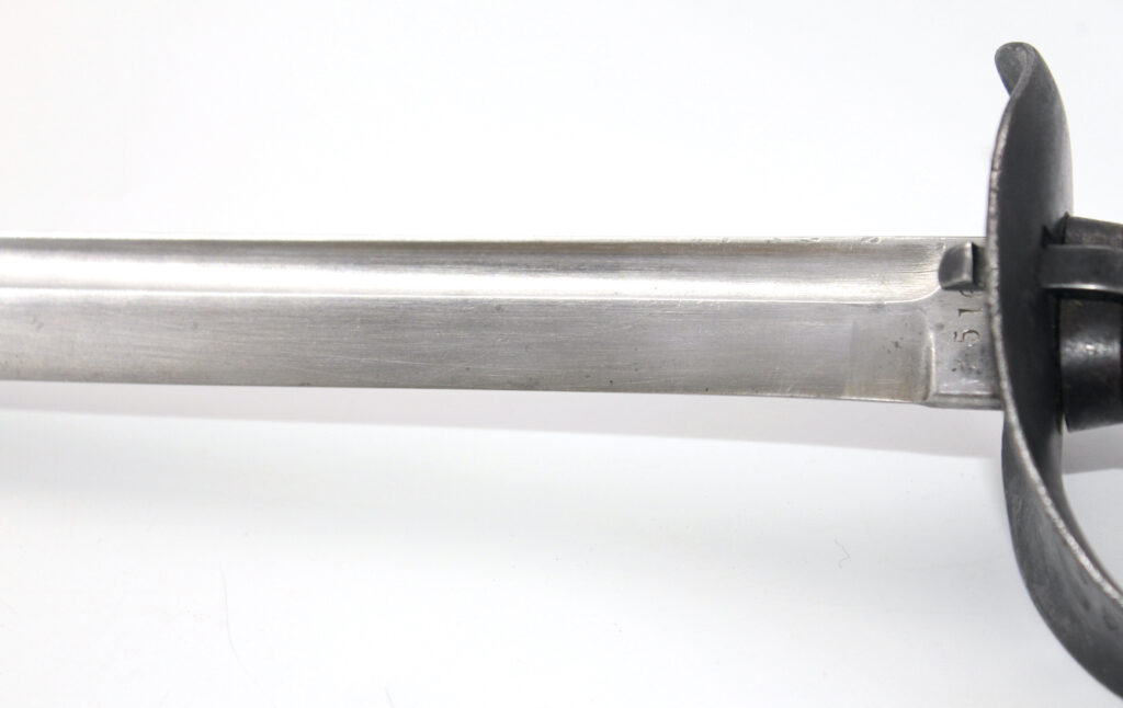 Ce sabre comportait à l’origine une boucle en cuir à l’intérieur de la garde. Cette boucle en cuir est manquante sur ce sabre, il ne reste que le trou du rivet de fixation. La boucle en cuir était souvent retirée volontairement pour diverses raisons. Une des raisons était le fait qu’elle gênait le port des gants.