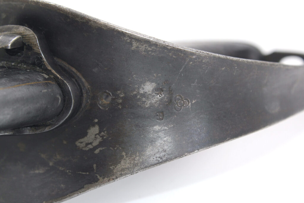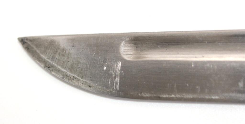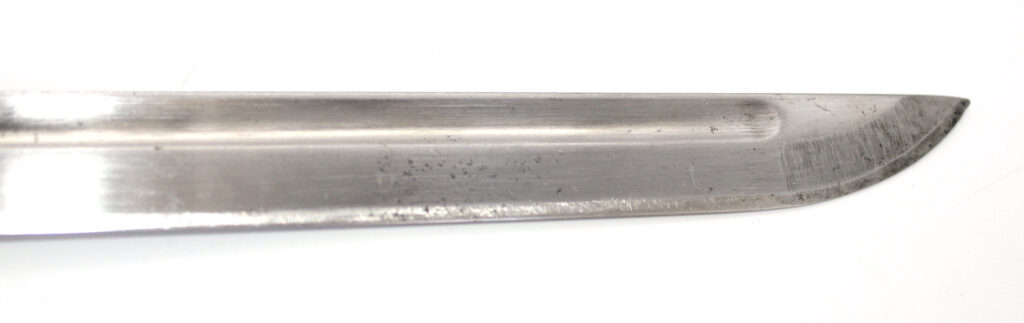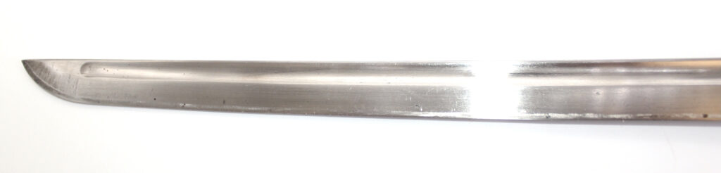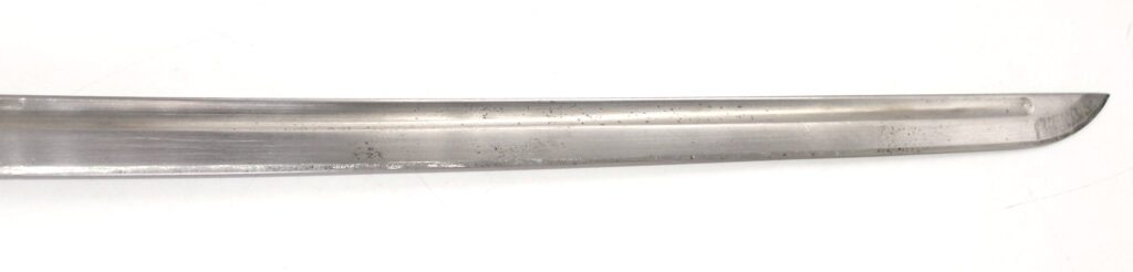 Le seppa en cuir entre la garde et la lame indique que ce sabre est issu d’une production précoce. Les productions ultérieures comportent des seppa métalliques.