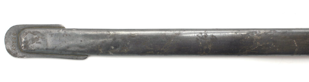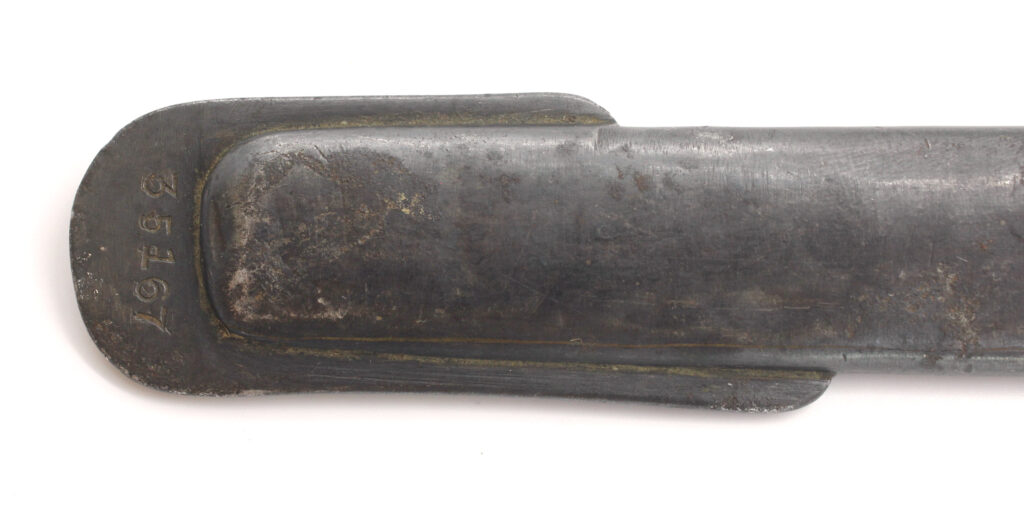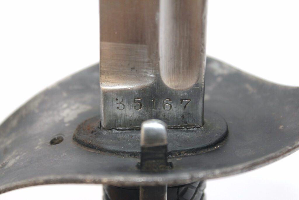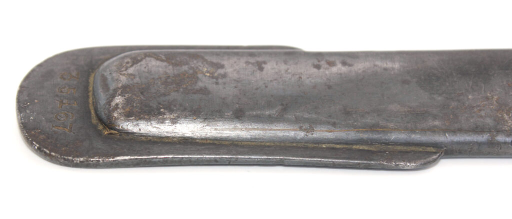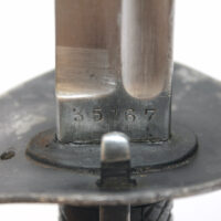 Le numéro de série frappé sur la lame est identique à celui présent sur l’extrémité du fourreau en acier : 35167