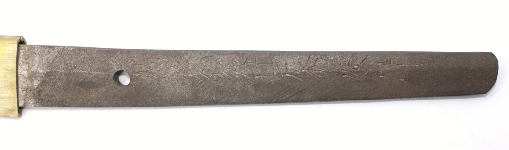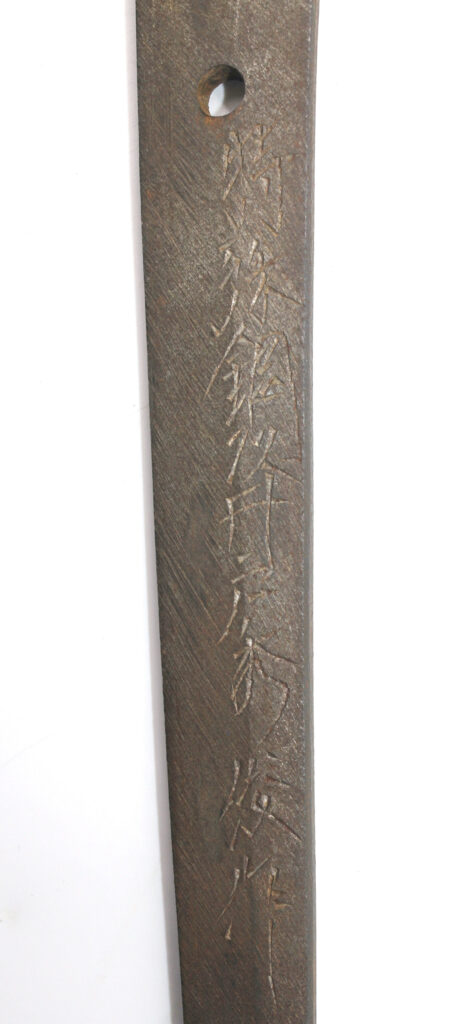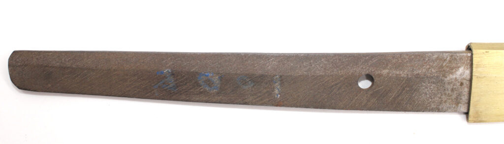 Le Nakago (partie de la lame insérée dans la poignée) porte la signature du forgeron :