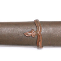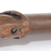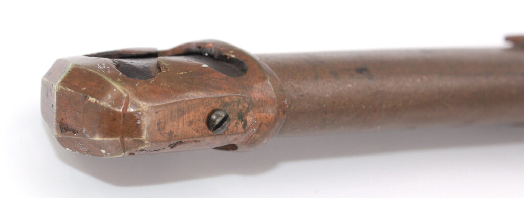 Un bouton de verrouillage/déverrouillage est présent sur le fuchi pour bloquer le sabre dans son fourreau à l’aide d’une tige en métal mais l’accroche ne fonctionne plus.