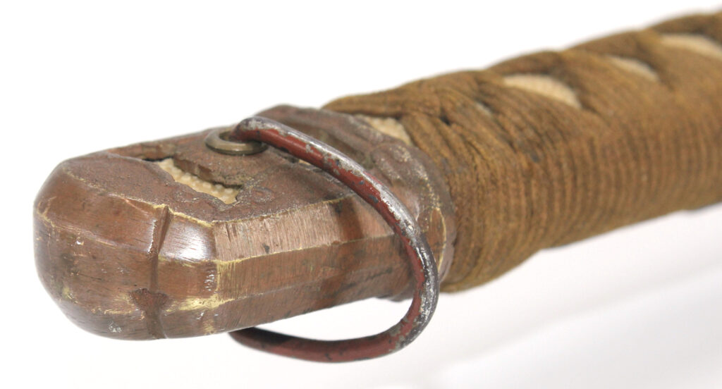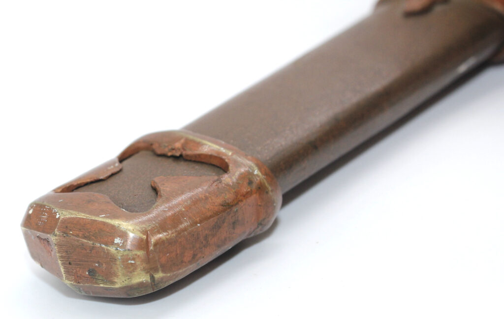 Le fourreau du sabre est en acier peint. L’intérieur de celui ci est habillé de bois de magnolia afin de protéger la lame de l’oxydation.