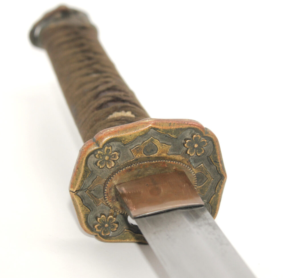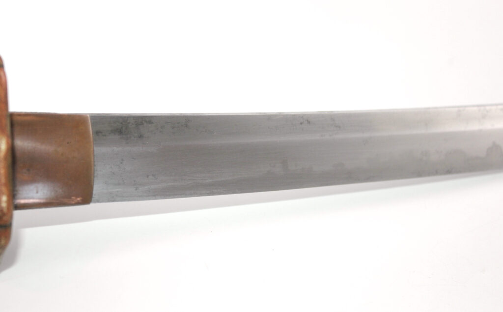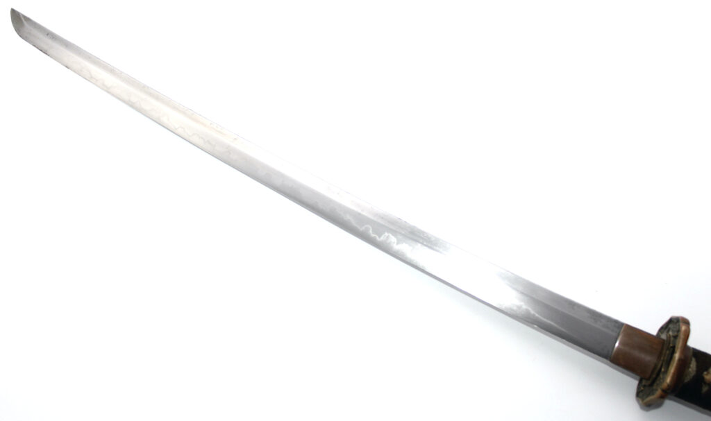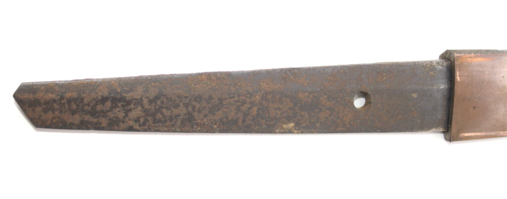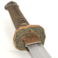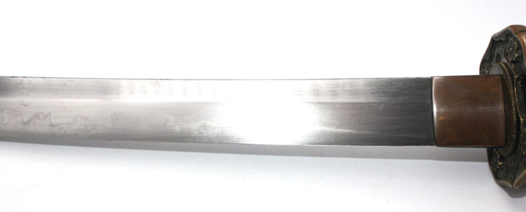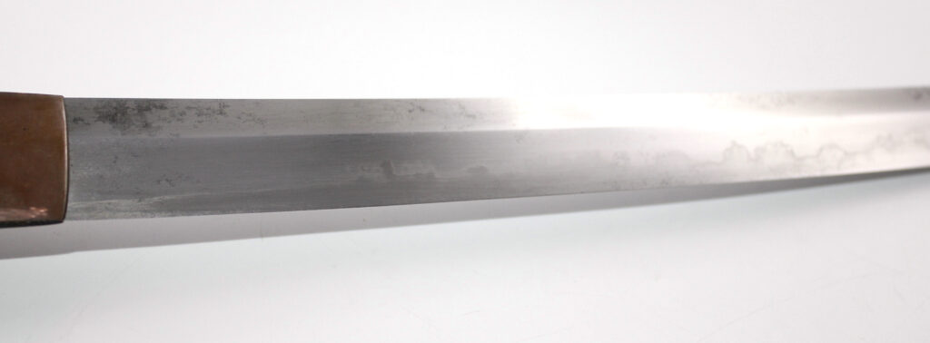 Cette ancienne lame de famille datant du XVIIe siècle provient donc initialement d’un sabre Shinto. Elle appartenait probablement à un ancêtre de l’officier japonais qui a monté cette lame sur des montures Shin Gunto afin de l’utiliser durant la Seconde Guerre mondiale.