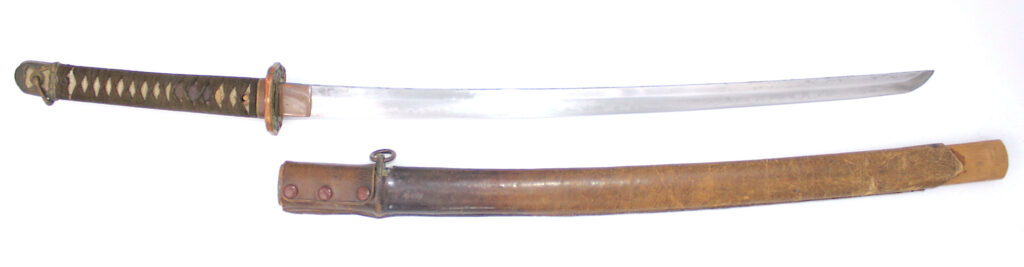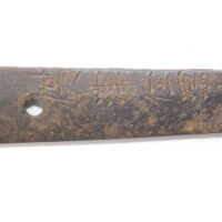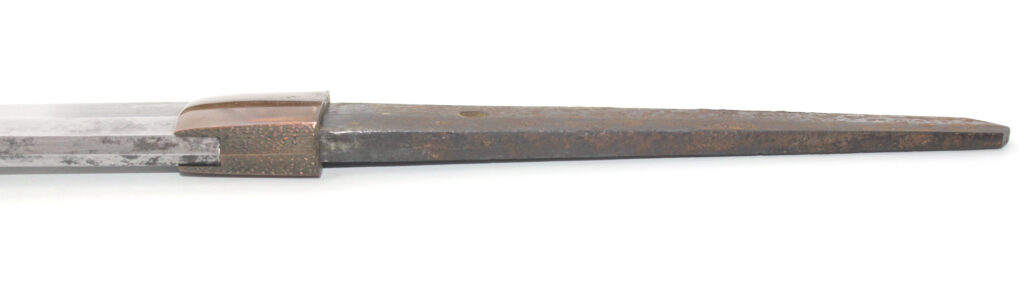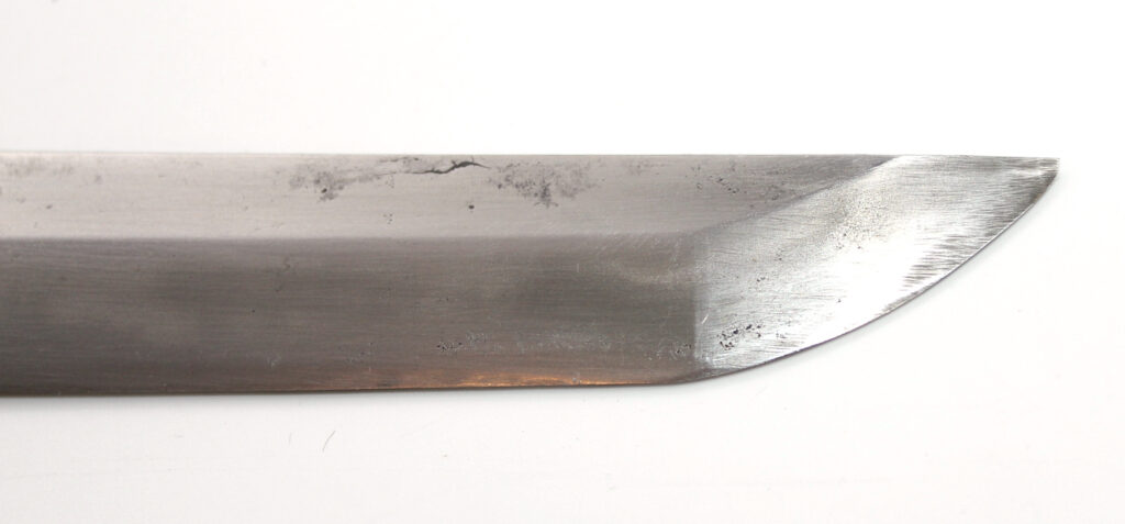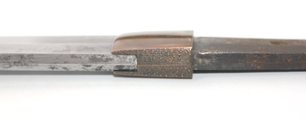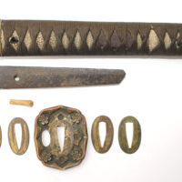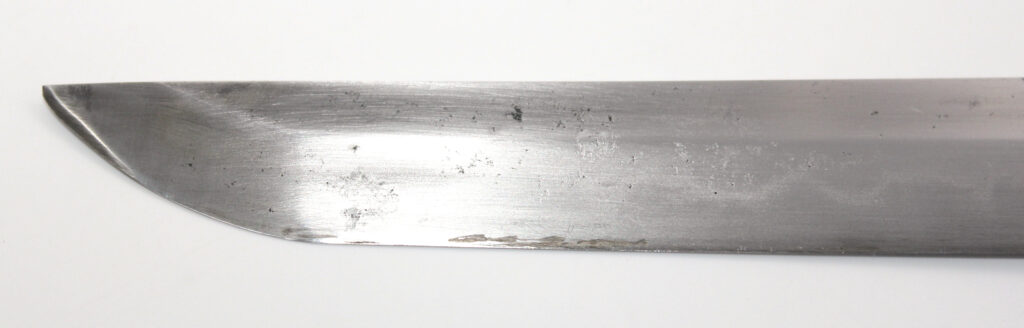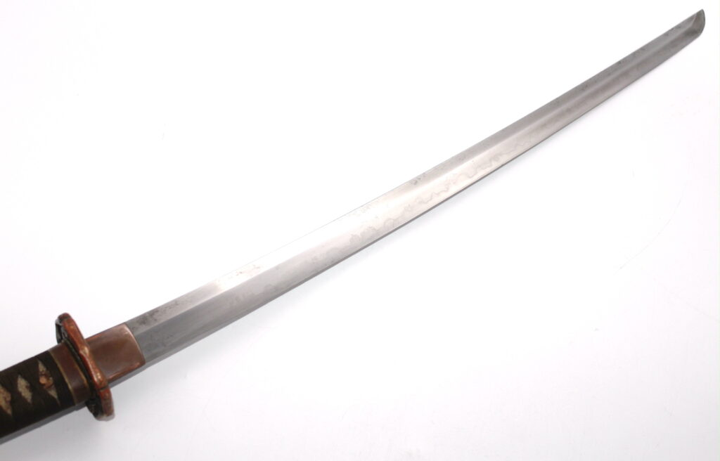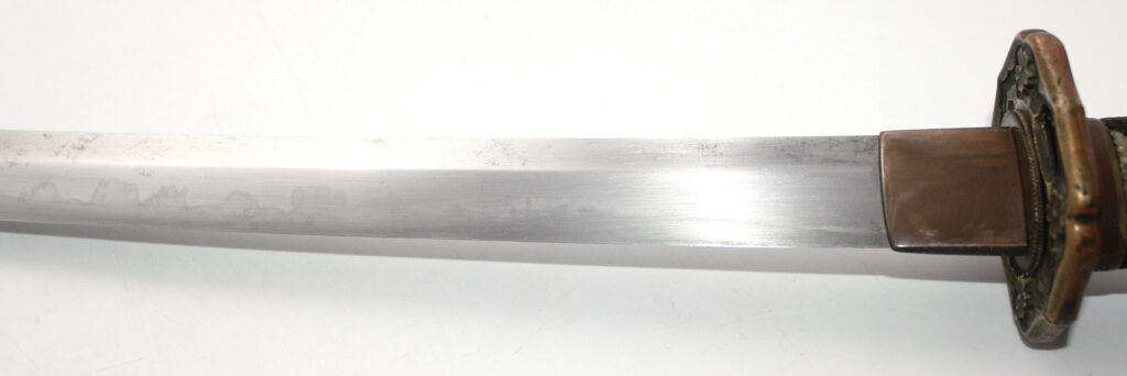 Cette ancienne lame de famille datant du XVIIe siècle provient donc initialement d’un sabre Shinto. Elle appartenait probablement à un ancêtre de l’officier japonais qui a monté cette lame sur des montures Shin Gunto afin de l’utiliser durant la Seconde Guerre mondiale.