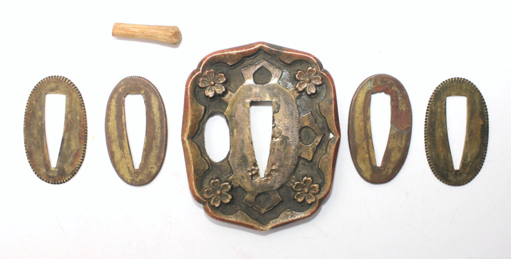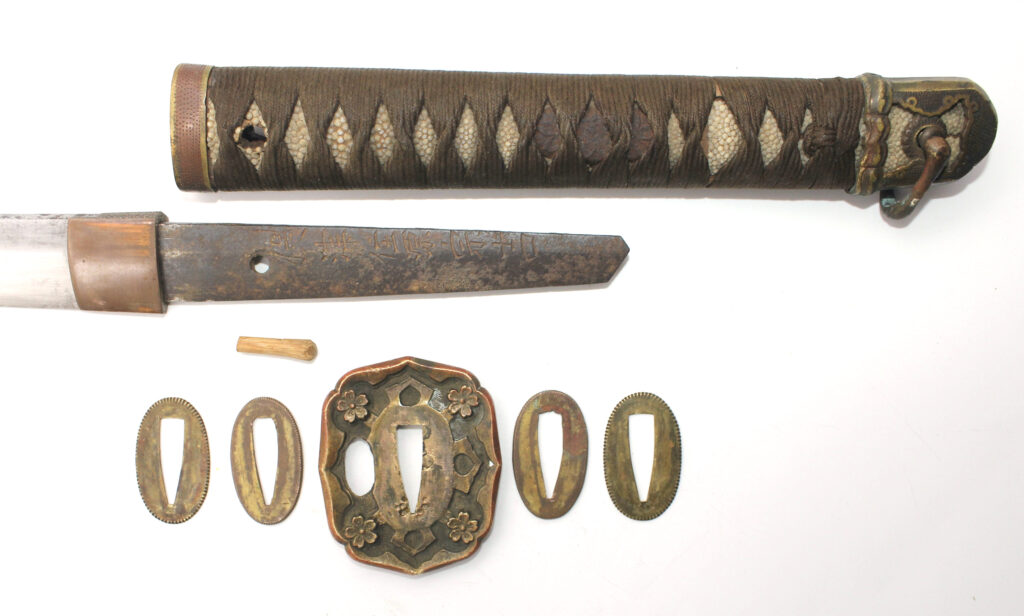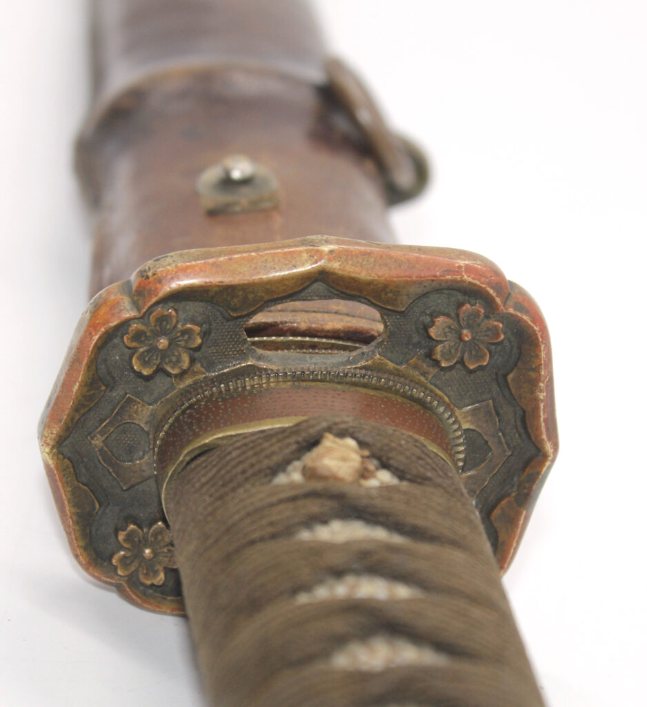 Les montures du sabre et du fourreau sont pour la plupart sont ornées de fleurs de cerisier. La Tsuba (garde) est accompagnée de seppa de chaque coté. Tous les éléments sont bien serrés entre eux.