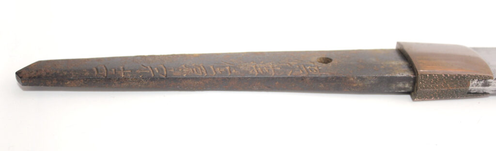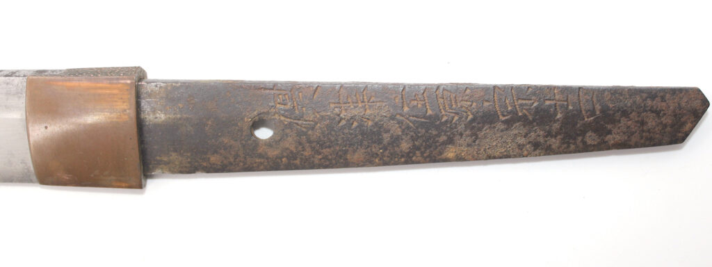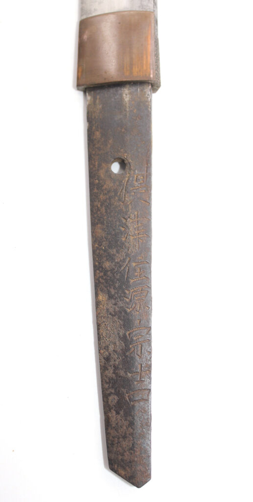 Le Nakago (partie de la lame insérée dans la poignée) porte la signature du forgeron :