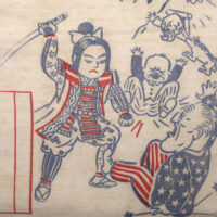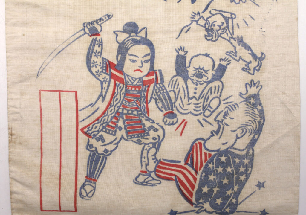 Celui ci comporte une représentation de Momotarō (héro du folklore japonais) en samouraï en train de battre Franklin Roosevelt et Wiston Churchill.